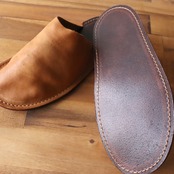 上質なレザーで作られたハンドメイドレザースリッパ。